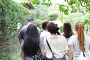 1日目は「別所温泉」のフィールドワークを実施しました。「信州の鎌倉」と呼ばれる風情のある街並みや寺社仏閣への訪問を通じて歴史・文化に触れたり、雄大な自然を楽しんだりと、グループごとに都会では出会えない景観や非日常の雰囲気に新鮮さを感じながら、沢山の気づきを得ました。